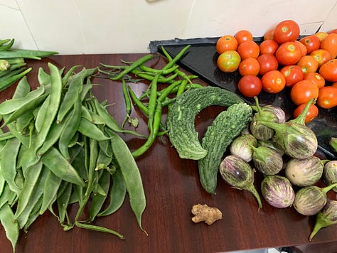 We are a large family, and our cook makes 2 fresh meals each day, 6 days each week, but we can easily fulfill a week’s worth of fruit and vegetable needs for roughly $8. That is not a typo. For less than one hour of minimum wage work in the United States, we can buy bundles of fresh curry leaves, bunches of cilantro, kilos of green beans and onions, hill bananas, coconuts, guava, sour sop, and so much more. The only thing we worry about is our shoulder joint holding out while we make the kilometer walk home, but we never ever fret over the expense.